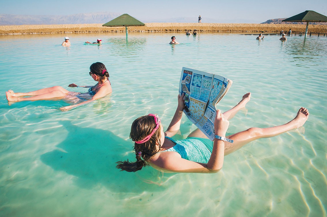 Любимое развлечение туристов на Мертвом море – испытывать чувство «невесомости». И в доказательство этого эффекта все делают обязательное фото с газетой или книгой. Соленая вода прекрасно держит на поверхности, на ней можно спокойно лежать. А вот плавать из-за большой плотности затруднительно.