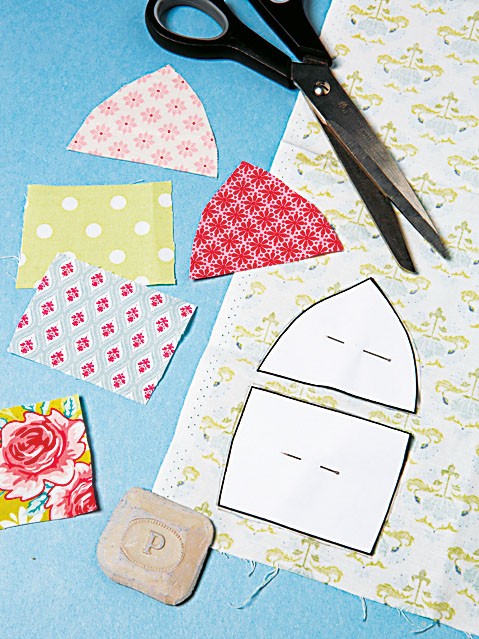 1. Нарисуй на бумаге две детали выкройки. Перенеси их на ткань и вырежи трижды.