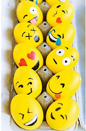 Покрась яйца в насыщенный желтый, и с помощью пищевого маркера нарисуй на них настроение – весело!