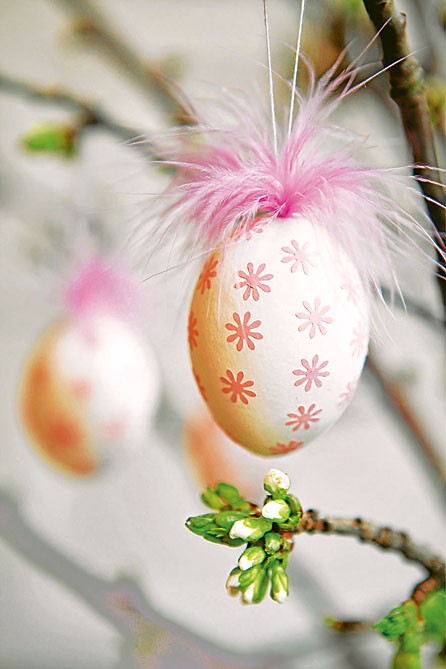 Возьми лист с мелкими наклейками и укрась ими яйцо. Сверху можно добавить перышко (на двусторонний скотч).