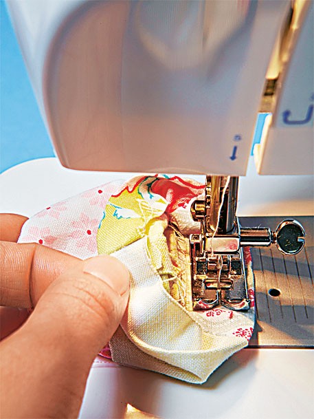 5. Отверни нижний срез на изнаночную сторону (на 5 мм) и проложи строчку.