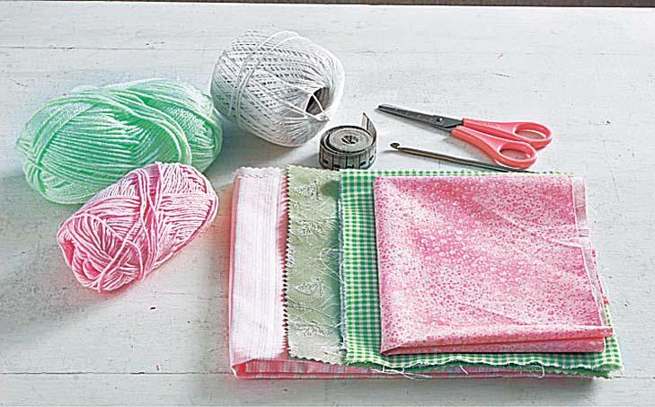 - пряжа двух цветов: розовая и зеленая (рекомендуем «ирис»)