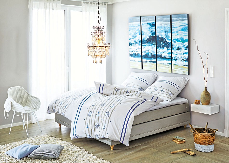 1. В сине-белых тонах. Это классика. Поэтому запасайся текстилем и перекрашивай мебель. Последнее гораздо проще, чем может показаться: грунтовка, краска без запаха и финальный слой лака – процесс будет веселым, а результат непременно порадует.