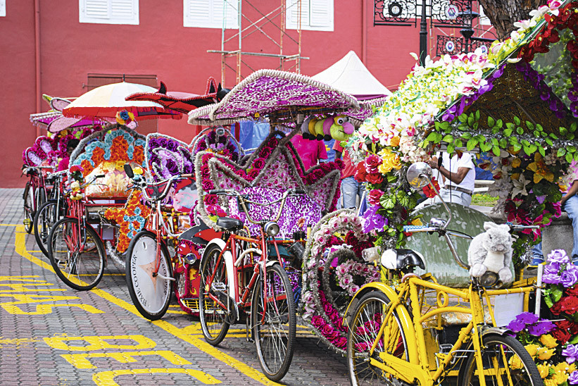 Чтобы увидеть город с другой стороны, отправляйся в круиз по реке Мелака. Также по городу можно передвигаться на ярко украшенной велорикше. Заодно сделаешь фото на память!