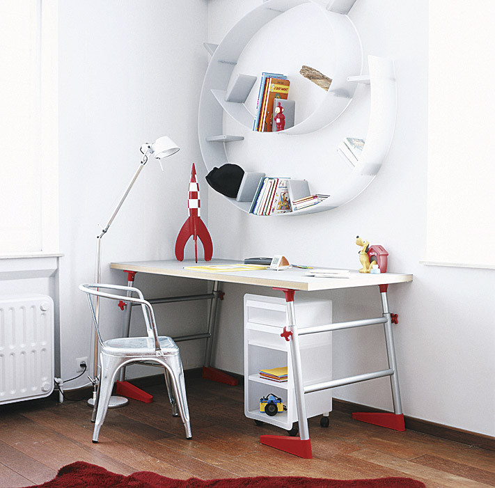 - Книжные полки, стеллажи, собственный стенной шкаф с универсальной системой хранения – чем проще найти место для вещей, тем больше вероятности, что ребенок захочет их убирать.