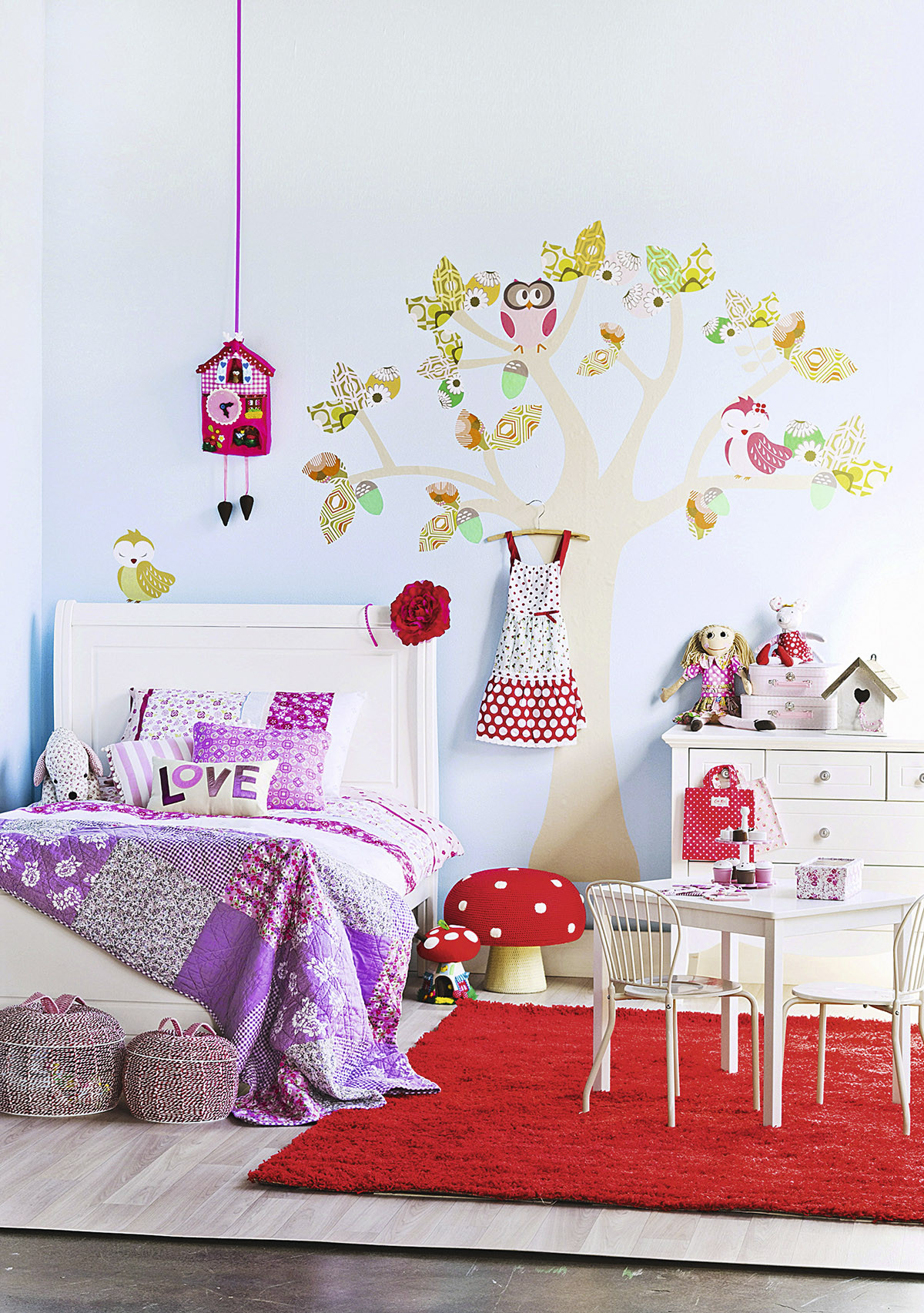 - Украшение стен. Смелые основные цвета – красный, синий и желтый – подходят для детей младшего возраста. Дети постарше могут предпочесть приглушенные тона: пастельные или нейтральные. Подумай о том, чтобы добавить на стены несколько выразительных элементов. Это может быть что угодно, от картин в рамке до галереи с рисунками ребенка. Просто убедись, что каждый предмет надежно закреплен и находится вне досягаемости для детских рук.