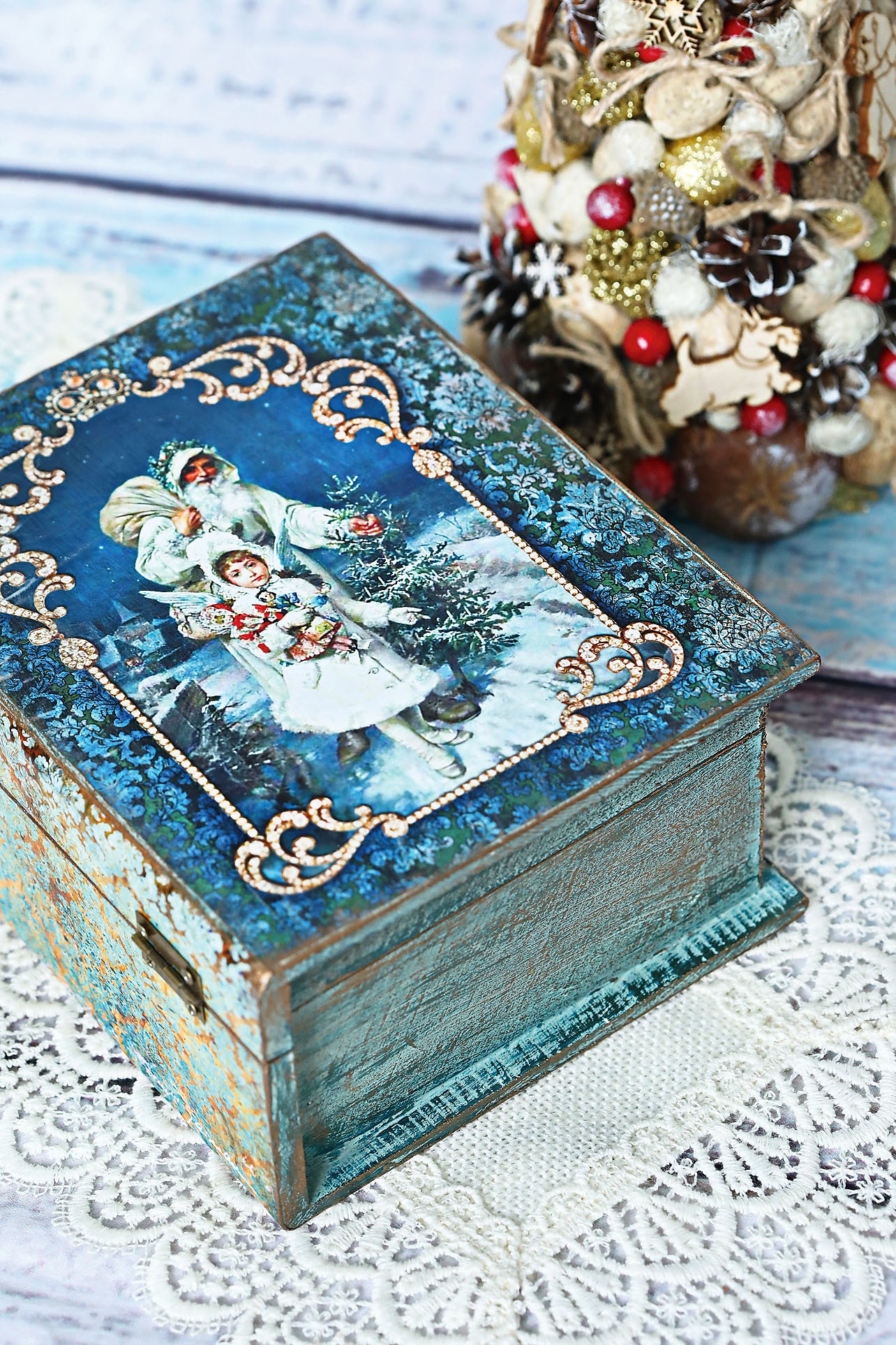 Декор шкатулки в технике декупаж позволит быстро создать эффектный интерьерный элемент, который станет прекрасным подарком для близких