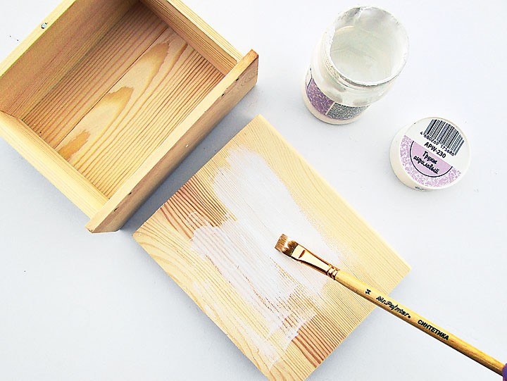Плоской синтетической кистью нанеси грунт на всю внешнюю поверхность заготовки. Дождись полного высыхания.