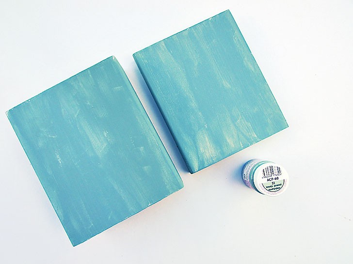 Кистью нанеси краску голубого цвета на загрунтованную поверхность.