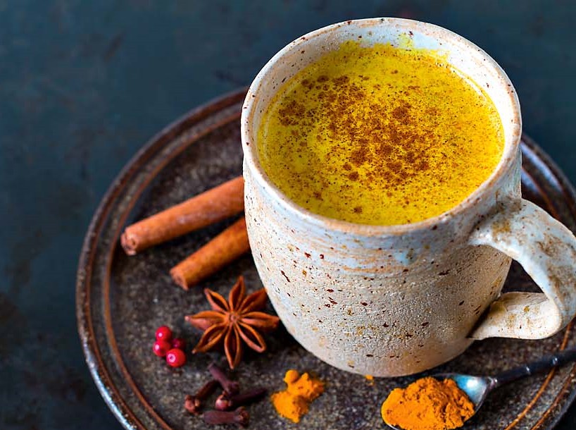 Или молоко с куркумой – полезная замена кофе! Вскипяти стакан молока с чайной ложкой куркумы, щепоткой корицы и перца. Пропусти через сито, добавь по желанию масло и мед.