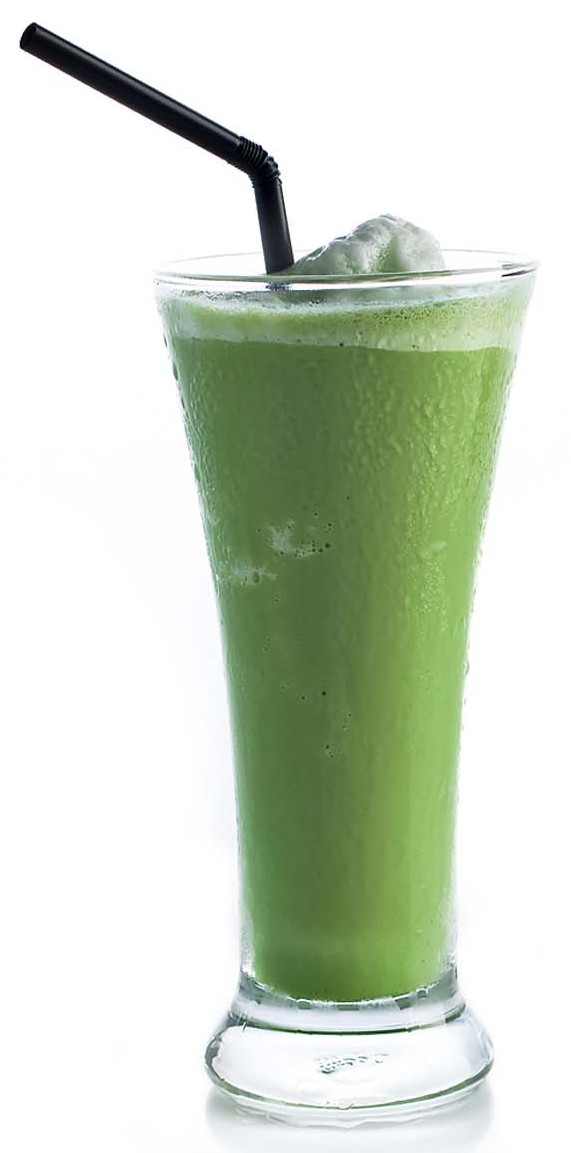 Зеленый смузи из растительного молока с половинкой авокадо, банана и ложкой чая маття придаст сил на тренировке. Выпей его за полчаса.