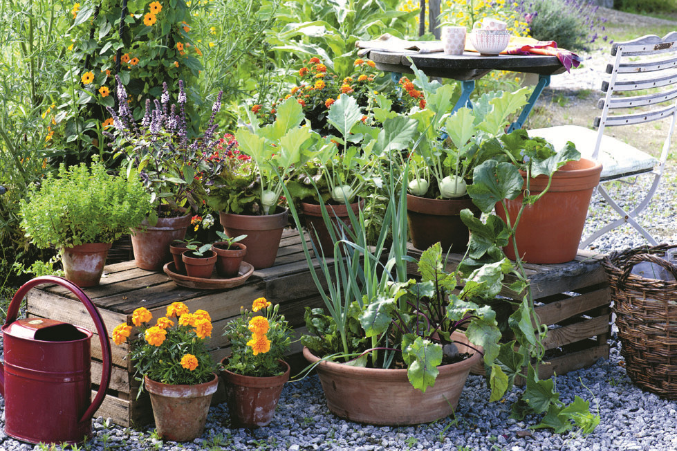 Между грядками с овощами и зеленью можно высадить яркие летники, мангольд с черешками разной окраски или красивый вид салата. Это не только очень эффектно выглядит, но и полезно для овощей. Однако не забывай правило: овощи, пряные травы и цветы-летники следует так сочетать между собой, чтобы они хорошо уживались друг с другом. А в идеале даже оказывали взаимопомощь. Например, низкорослые бархатцы или календула – желанные обитатели любой грядки, ведь они не только отпугивают вредителей и улучшают почву, но еще и обладают целебными свойствами. Впрочем, даже если овощные культуры из-за такого партнерства не увеличат урожай, визуально огород будет выглядеть гораздо симпатичнее.