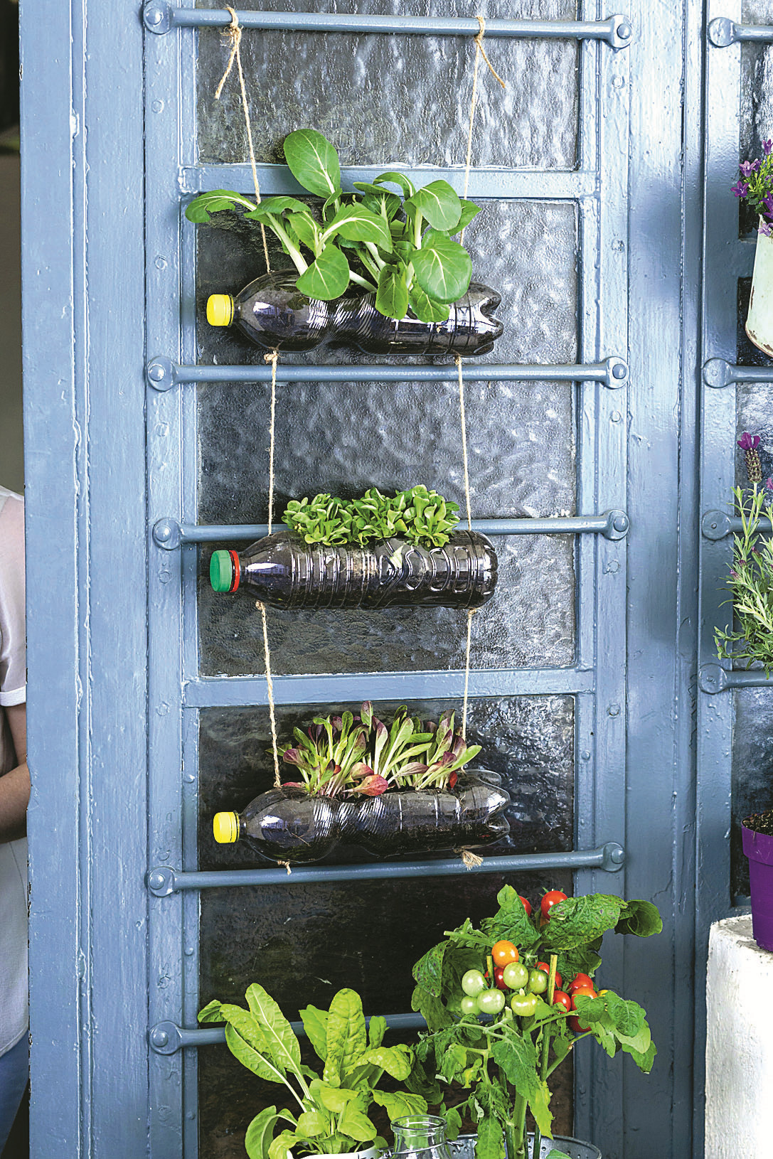 Если места совсем нет, подумай о вертикальной посадке. Выход всегда можно найти – например, преврати в емкости для зелени и салата обычные 2-литровые пластиковые бутылки и расположи их на стене. Также это хороший вариант для посадки зелени на веранде или балконе.