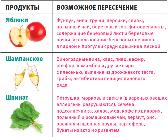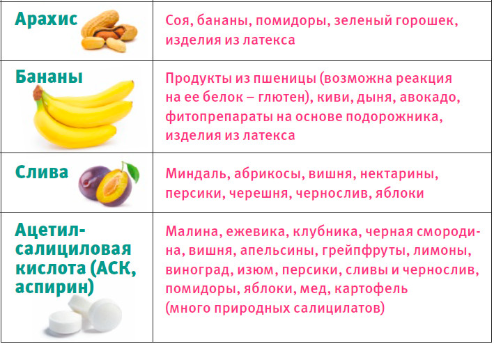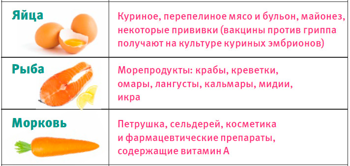 Если у тебя аллергия на продукты и препараты из левой колонки, стоит воздержаться от всего, что упомянуто справа...