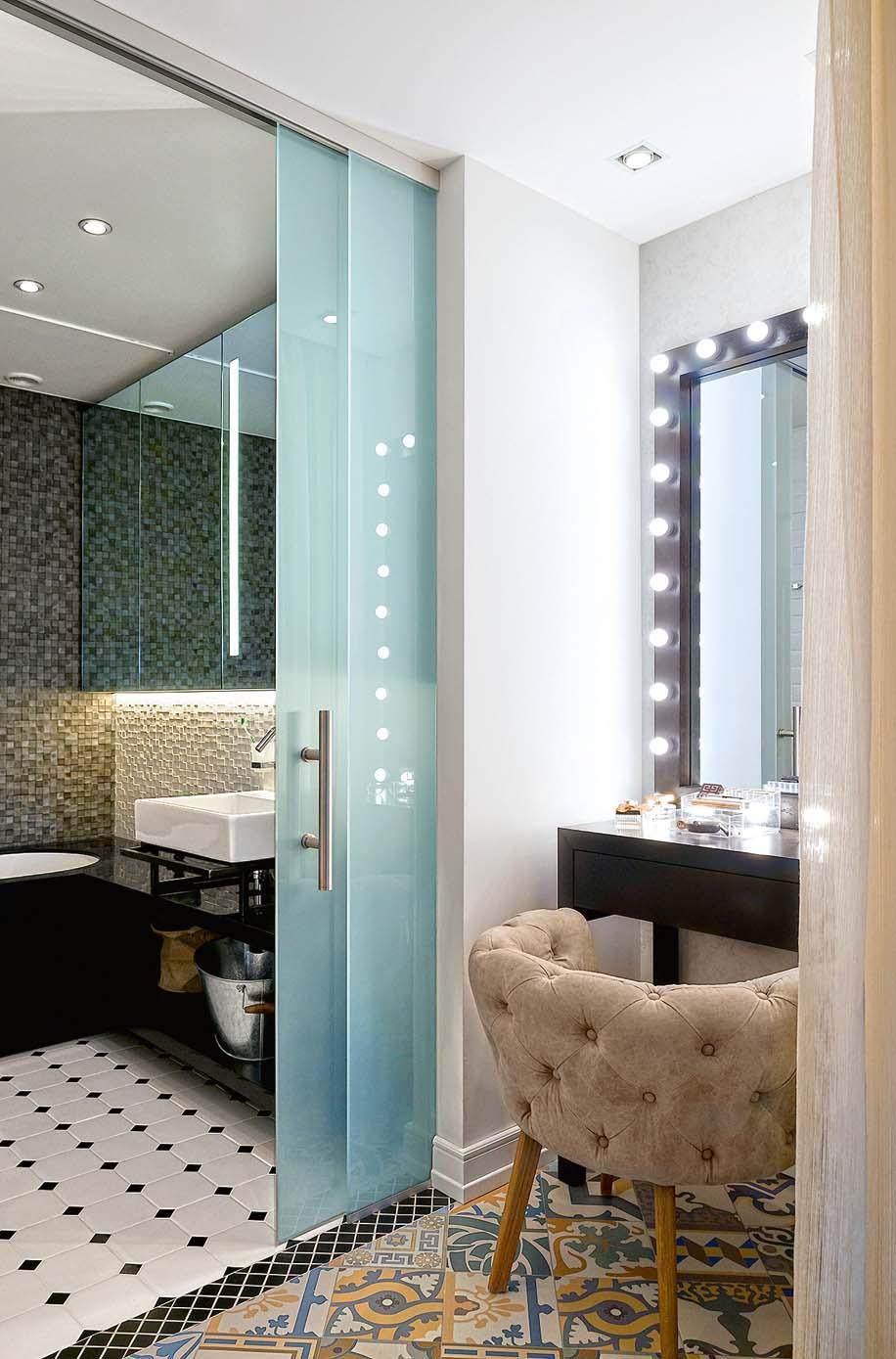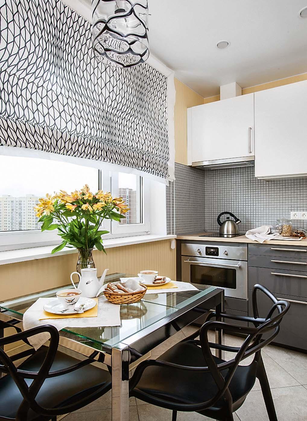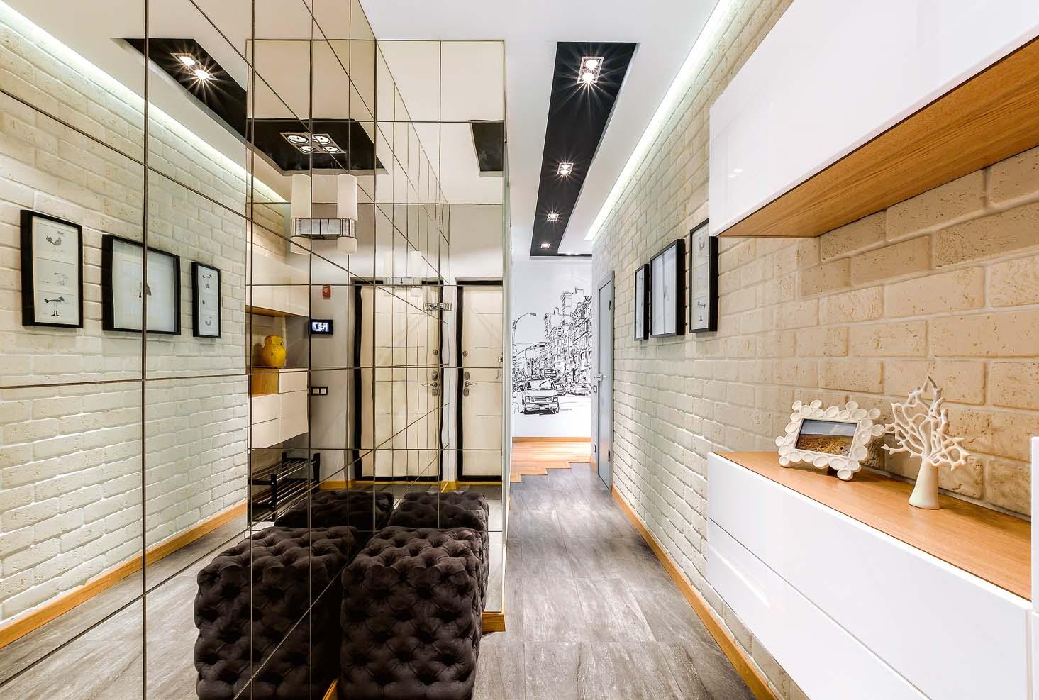 Чем больше в квартире воздуха и света, тем просторнее она выглядит. Подобное впечатление помогают создать бликующие и отражающие поверхности: глянцевые светлые (реже темные) фасады шкафов, стеклянная мозаика, выполненные из стекла филенки дверей, прозрачные или матовые глянцевые перегородки, столешницы и шкафы-витрины. Зеркало способно «удвоить» объем помещения, главное – выбрать для него подходящее место (лучше напротив окна или прохода в соседнюю комнату). Цельное полотнище можно заменить на зеркальное панно, составленное из фрагментов, с выполненным на них фацетом.