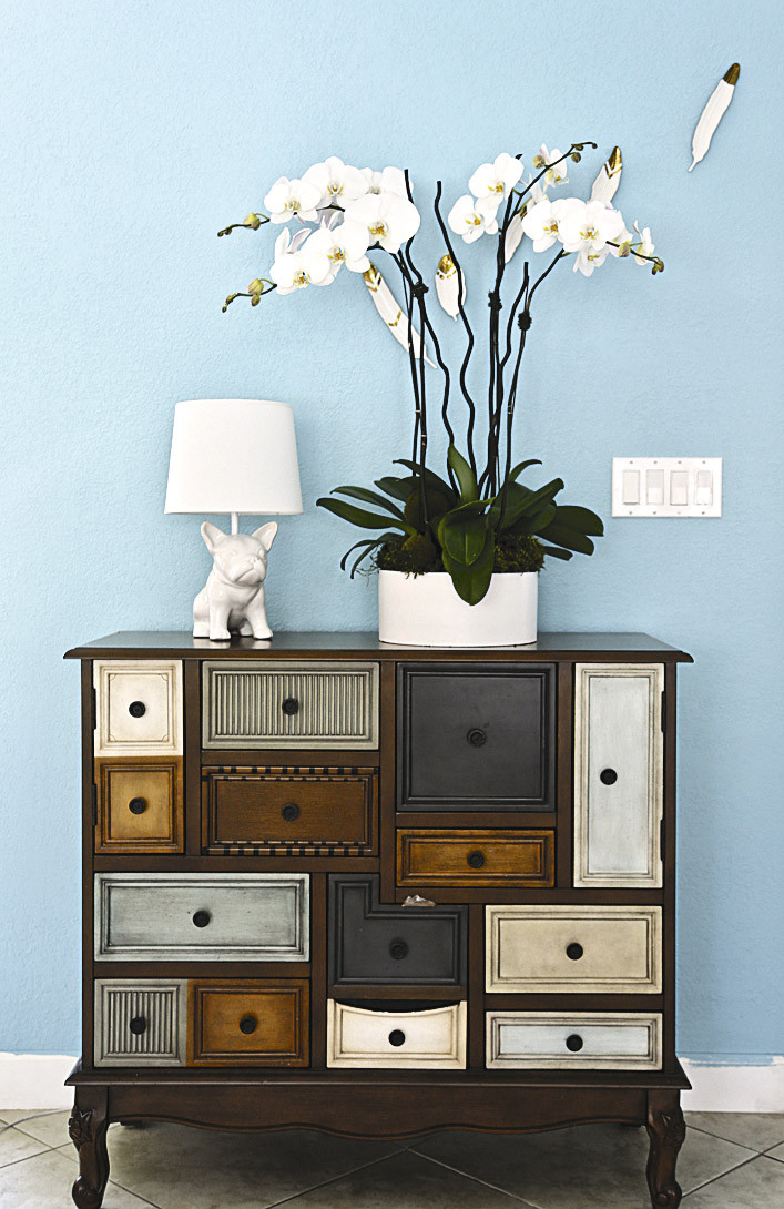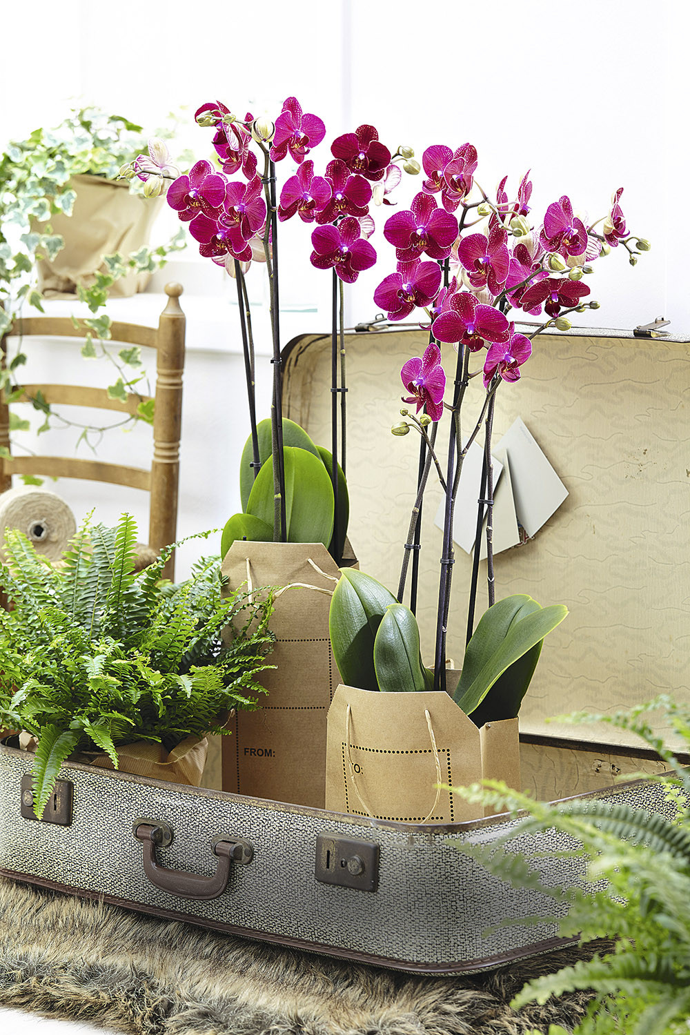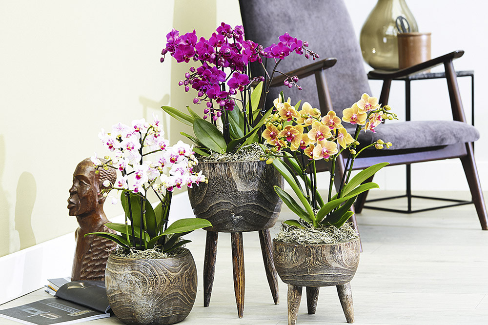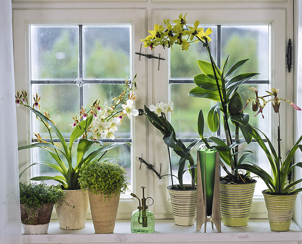 А можно создать и мини-садик, пересадив в одинаковые кашпо орхидеи, декоративную зелень и любые другие комнатные цветы.