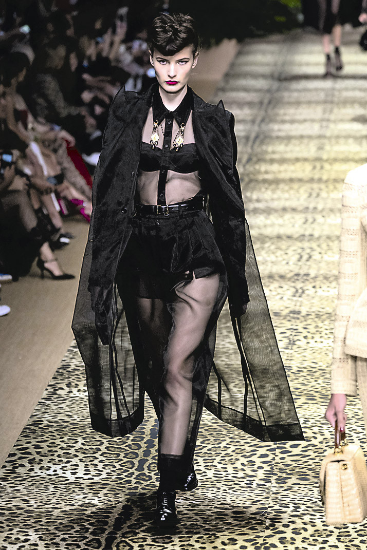 Назовем этот тренд «тотальная прозрачность». Носить предлагается как полностью прозрачные юбки, шорты и брюки, так и платья, которые ну практически ничего не скрывают. Даже относительно сдержанные в своих итальянских страстях Доменико Дольче и Стефано Габбана не смогли устоять и явили миру весьма нестандартную коллекцию.