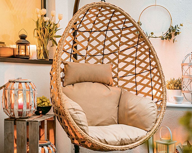 Интересный способ стильно оформить балкон – повесить кресло-качели. Убедись, что потолок рассчитан на такие нагрузки, и подбери место для кресла так, чтобы в нем было удобно сидеть, но при этом оно не мешало двигаться. Дополни мебель подушками и пледами, поставь рядом журнальный столик и пару комнатных растений – получится уютное пространство, в котором будет приятно отдыхать в непогоду.