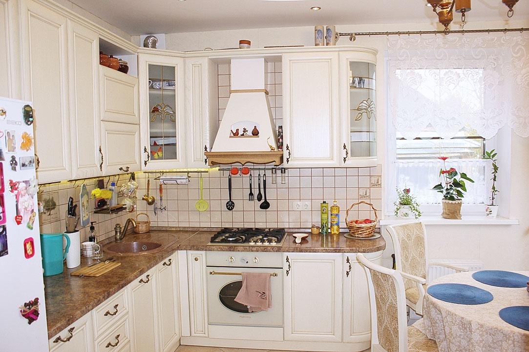 Просторная кухня, выполненная в классическом стиле и светлых тонах, – стратегически важное место в доме музыканта. Во-первых, здесь рождаются настоящие кулинарные шедевры (жена Маруся и теща артиста Римма любят и умеют готовить!), а во-вторых, здесь же, за большим, круглым столом проходят все семейные праздники и встречи с друзьями.