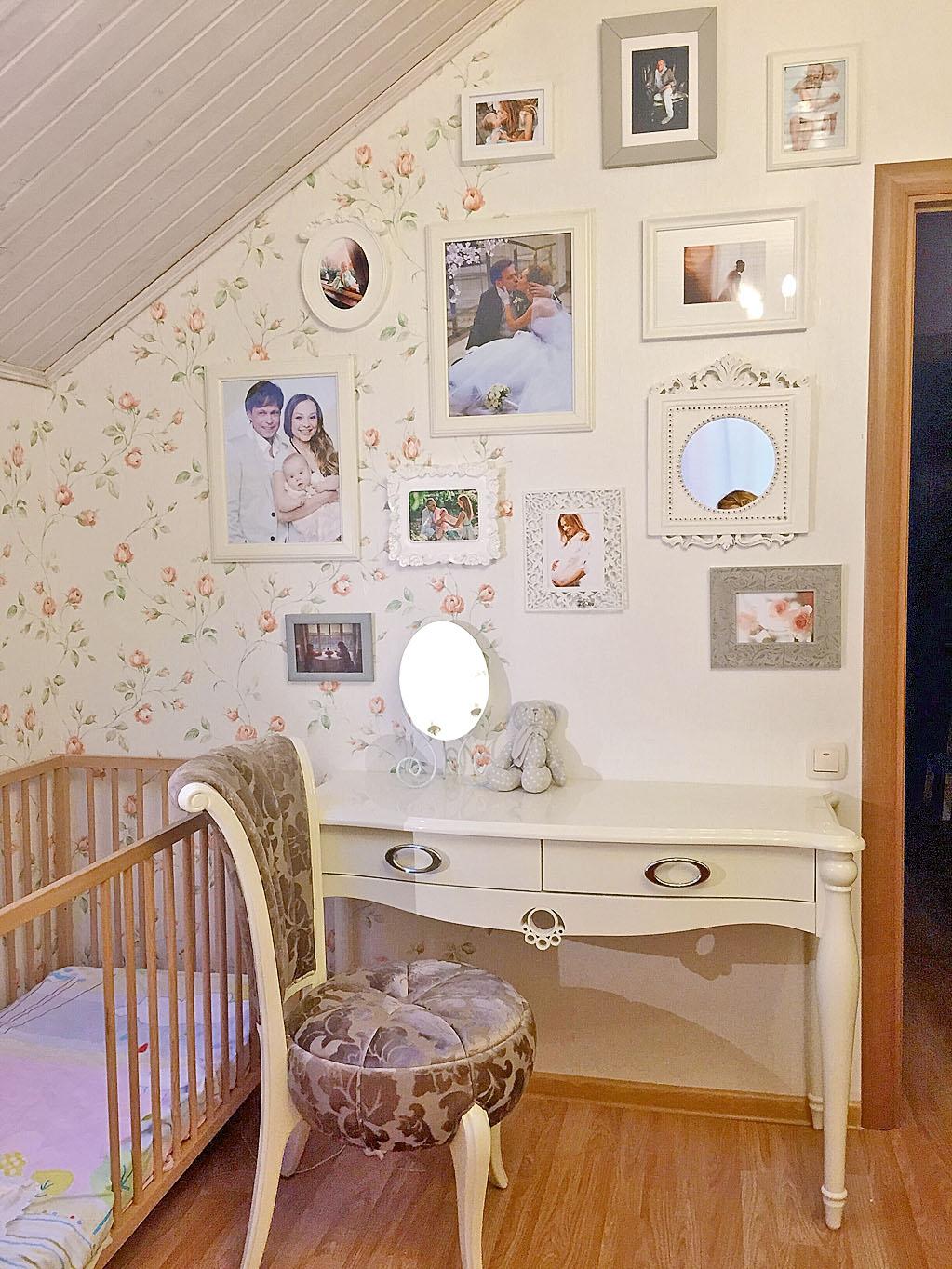 Волшебный день свадьбы, будущие родители в ожидании малыша, первые моменты с крошкой Никой на руках – какие только фото не украшают стены небольшой спальни супругов Левкиных. Все они обрамлены в изящные рамы разных цветов, форм и фактур и составляют единую композицию. С первого взгляда понятно, такой нежный декор со смыслом – дело рук женщины – хозяйки, хранительницы очага и обладательницы тонкого вкуса – Маруси, супруги артиста. Она убеждена – дорогие сердцу моменты не стоит хранить в шкафах и альбомах – все должно быть перед глазами. Чтобы каждый день смотреть, радоваться, благодарить!