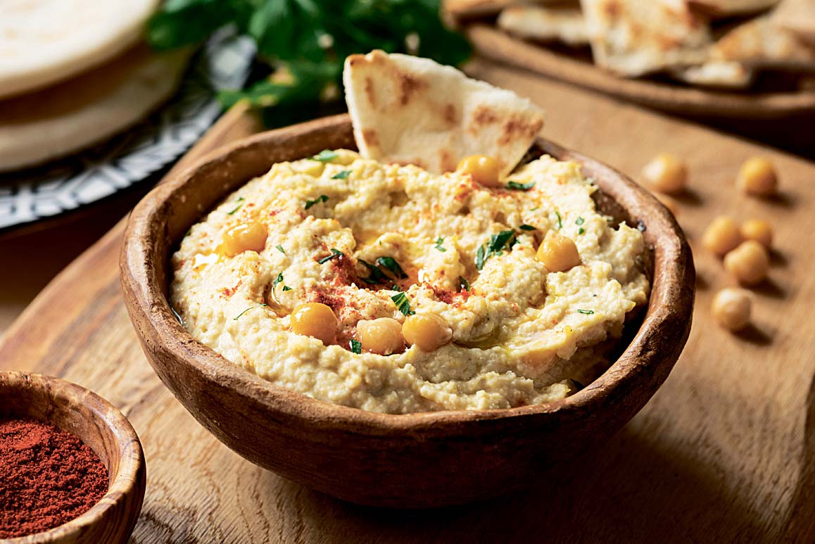 Дети на Ближнем Востоке между основными приемами пищи с удовольствием уминают арабский хлеб хобз с хумусом. Хумус же делают из измельченного нута с добавлением масла и специй.