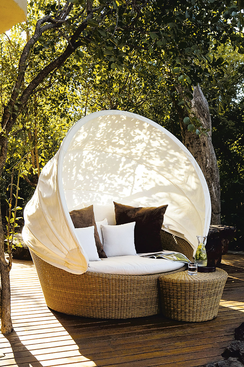 Уличная мебель должна быть влагоустойчивой, неприхотливой. Примеры такой мебели: качели с навесом, беседки, подвесные кресла и стулья из искусственного ротанга. Кресла-качалки можно устанавливать в саду, в зоне отдыха, на террасе. Плотный тканевый навес защищает от солнца, поэтому, сидя в уютной качалке, можно почитать книгу или вздремнуть. Еще одно преимущество – простая транспортировка: можно переставлять кресло с одного места на другое.