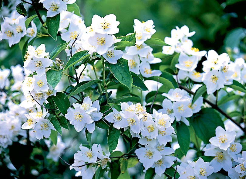 Его часто путают с жасмином за схожесть соцветий и тонкий аромат. Подходит для формирования живой изгороди. Правда, в полной тени он будет цвести не очень обильно. У чубушника много сортов, не все из них подходят для сада в средней полосе.