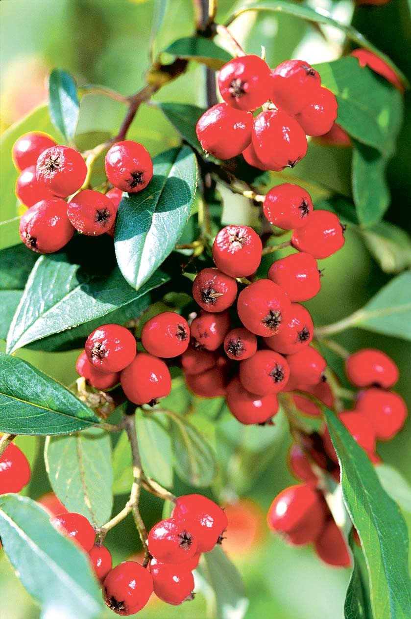 Кустарник с темно-зелеными листьями, которые осенью краснеют. Плоды ярко-красные или черные, цветы розовые или белые. Незаменим в живой изгороди из-за густой кроны. Есть стелющиеся и прямостоячие сорта.