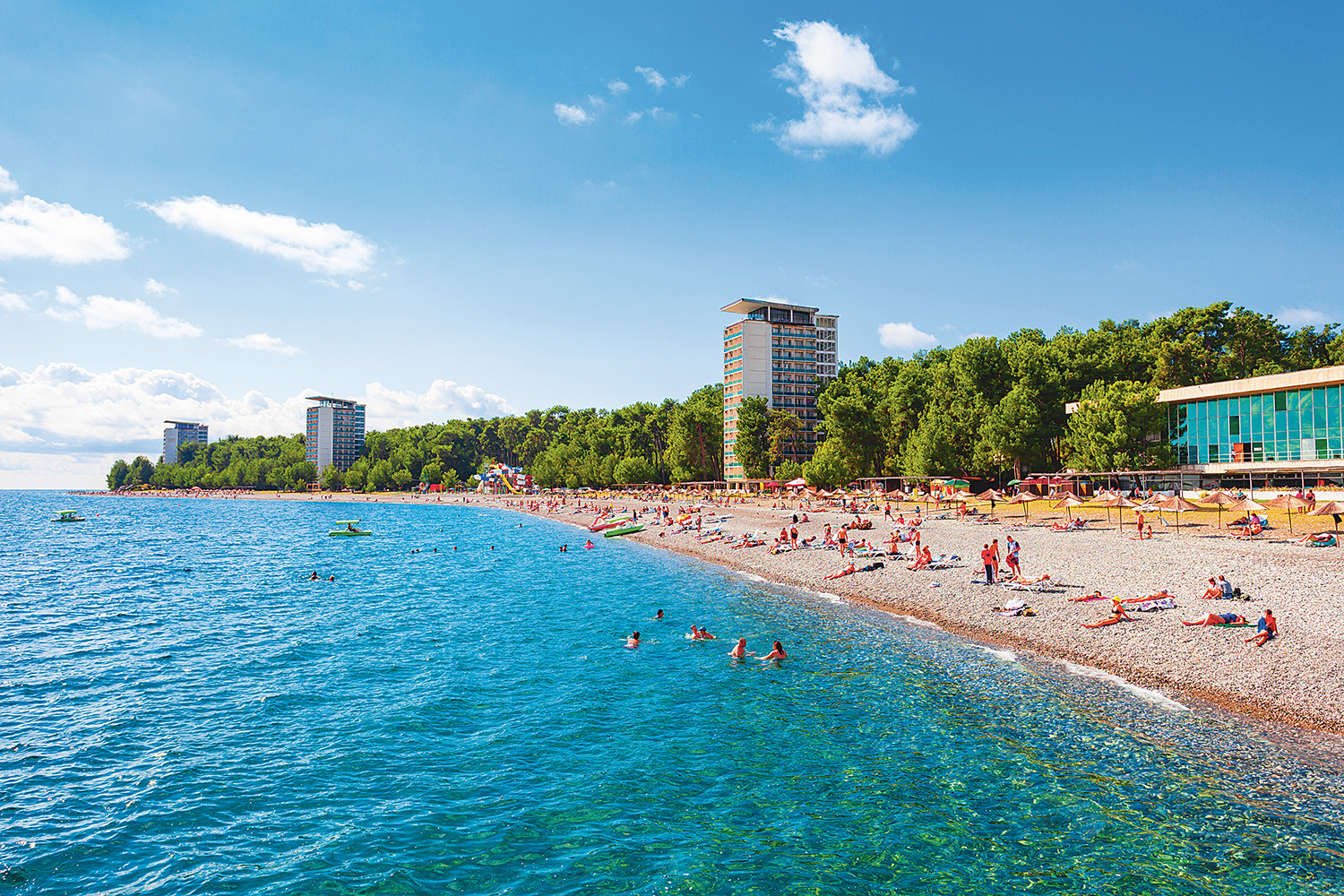 Этот курорт любим многими россиянами за близость к границе – Гагра расположена в 36 км от Адлера. К тому же город защищен от ветров горами, так что тут долгий купальный сезон. А еще от Гагры удобно добираться до основных туристических мест Абхазии: замка принца Ольденбургского, озера Рица и крепости Абаата. Длина береговой линии в Гагре – около 50 км, так что выбор пляжей огромен. Все они галечные, а значит, нужно запастись специальной обувью, но зато вода гарантированно чистая и прозрачная. Участки с привезенным песком можно найти на Центральном пляже в Новой Гагре.