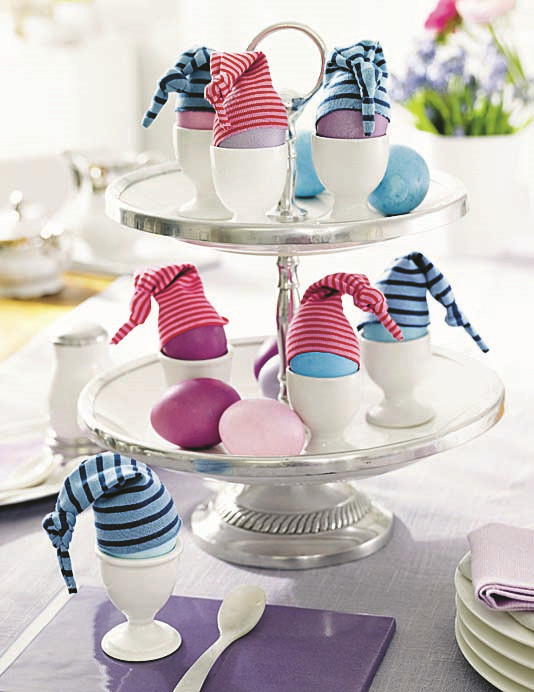 Используй для украшения дома подручный и природный материалы. Даже если ты не большая рукодельница и не располагаешь свободным временем, тебе вполне по силам сделать простой пасхальный декор. Например, из лоскутов ткани разного цвета и рисунка сшить колпачки, превратив яйца в милых гномов. Или собрать лесной мох и живописно разложить его на глиняной тарелке.