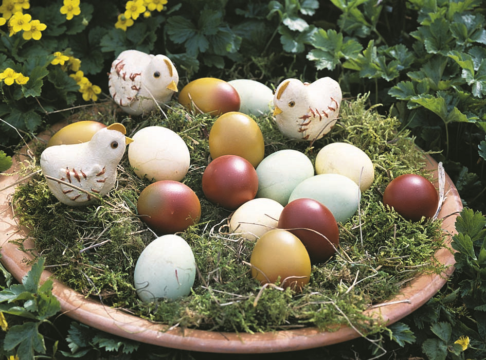 Традиционно принято подавать их на стол вместе с куличом. Но почему бы не проявить креатив не только в дизайне яиц, но и в способе их подачи? Например, положив в «гнездо» из соломы.