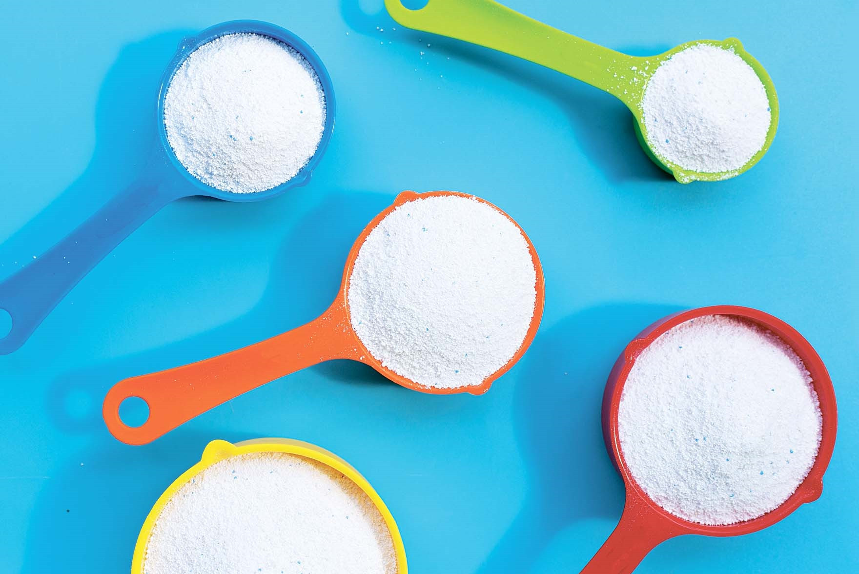 При стирке важно учитывать дозировку, которая указана на упаковке. Если добавить меньше – пятна не отстираются, больше – частички порошка останутся в волокнах. На дозировку влияет объем белья, степень загрязненности и жесткость воды. Порошок засыпают в лоток, а гели, капсулы, пластины кладут непосредственно в барабан.