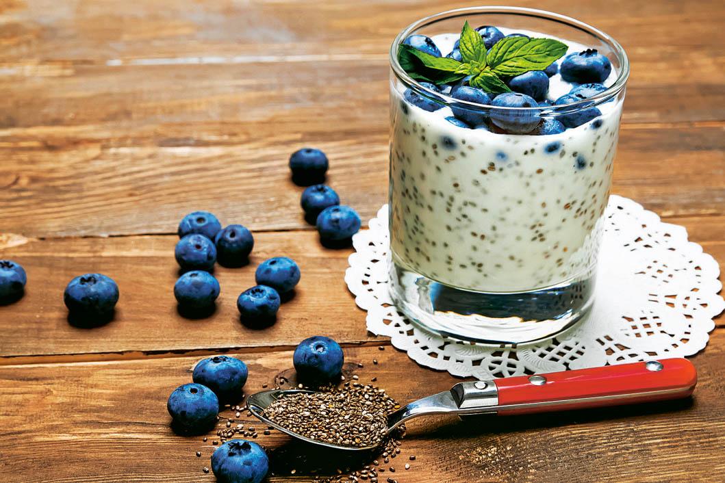 • 150 г свежих или замороженных ягод черники • 1 банан • 60 г овсяных хлопьев • 200 г нежирного йогурта