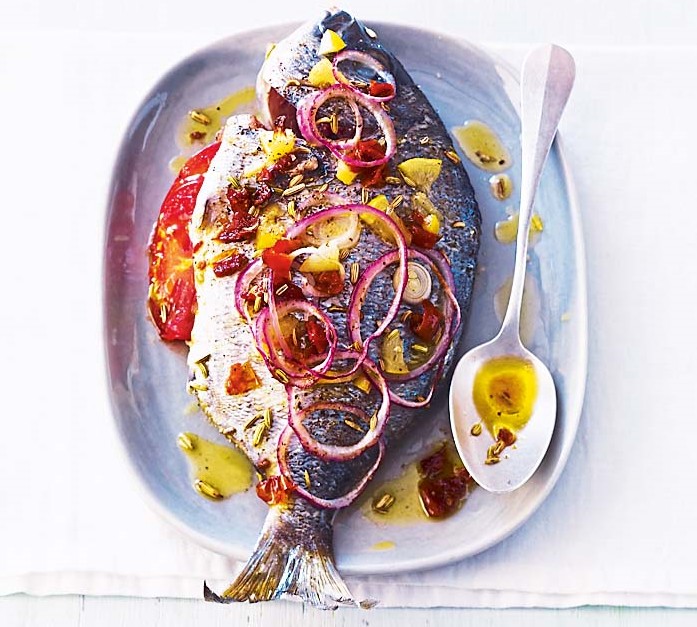 Рыба, запеченная с помидорами