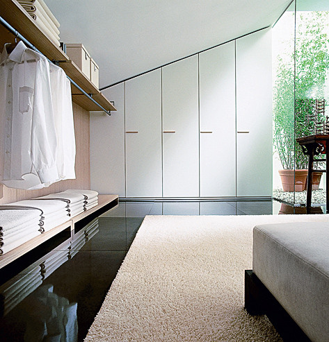 Оборудуя гардеробную в мансарде, имей в виду: сегодня существуют модульные системы хранения, спроектированные специально под наклонные потолки мансарды.