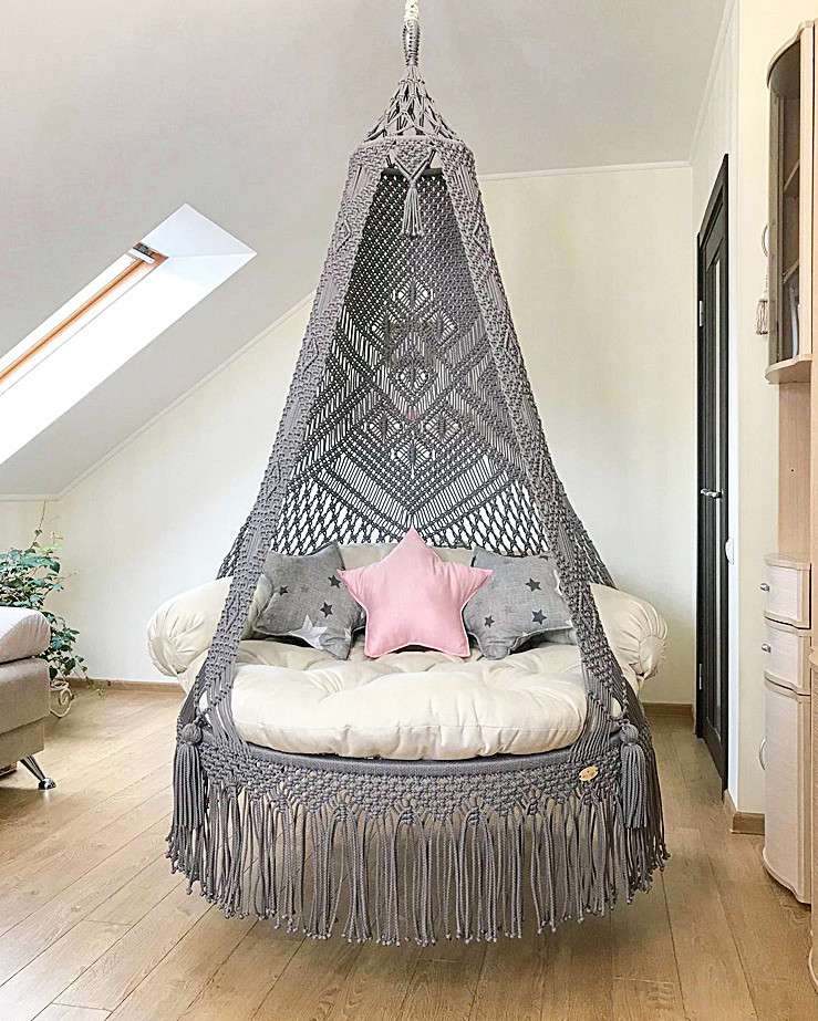 Идея для использования подпорной стойки – закрепить на ней кресло-качели.
