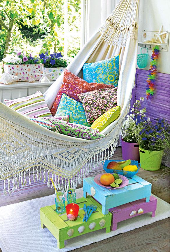 Ну вот, гамак готов! Теперь по желанию можно его украсить – получится не только удобно, но и стильно. Наиболее простой способ – пришить по длинным краям обычную бахрому или ажурную канву. Последняя продается во всех магазинах тканей, правда, стоит недешево, поэтому если у тебя есть хоть небольшие навыки в рукоделии – свяжи сама.