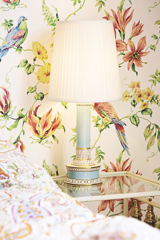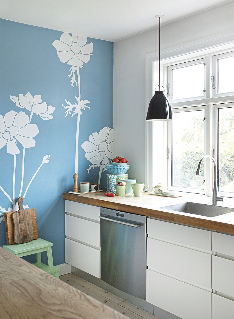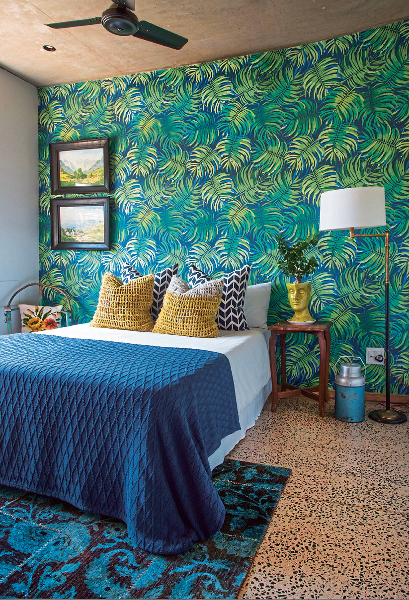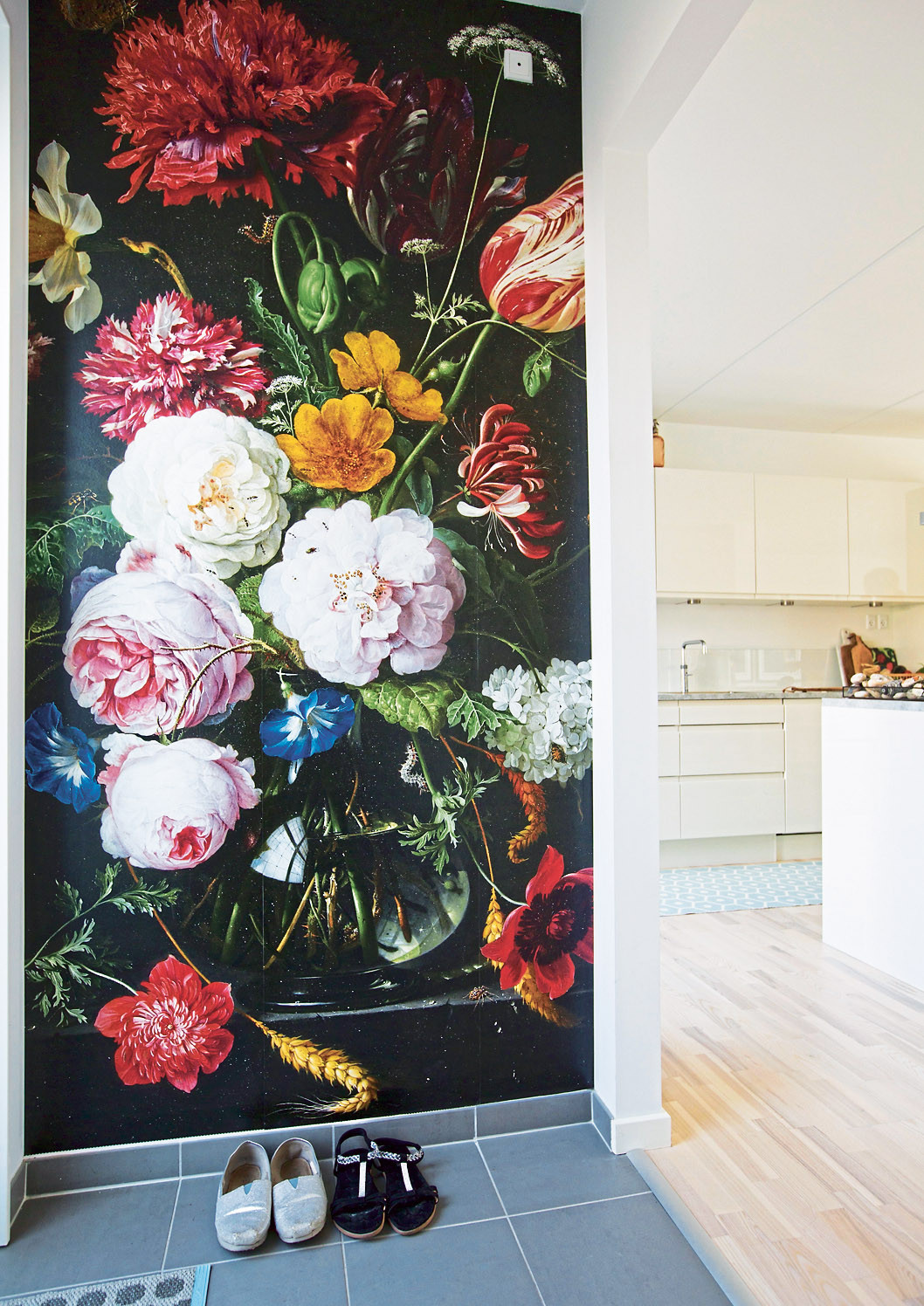 Цветочные обои не обязательно должны быть изысканными и элегантными. Сочетай мягкую по форме флору и фауну с геометричными линиями и узорами.