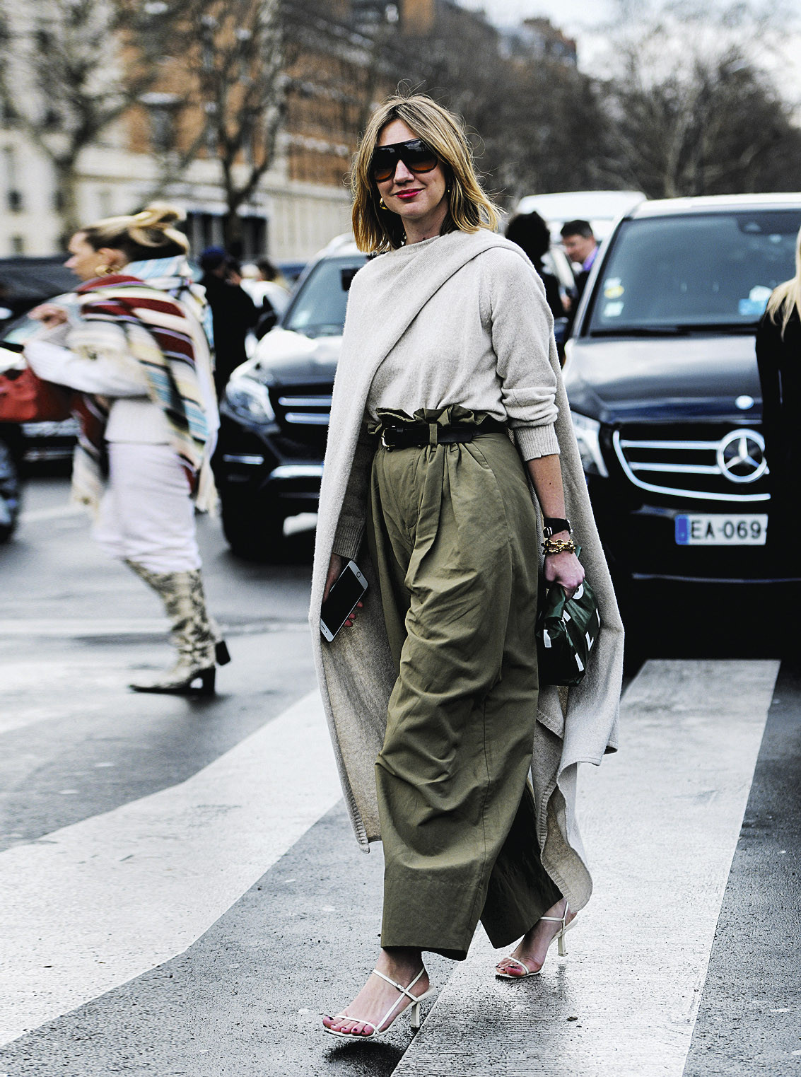 Этот прием сразу делает фигуру более подтянутой и аккуратной. Идеальный образ в данном случае – дуэт из обычной хлопковой футболки и брюк с высокой посадкой плюс длинный кардиган. Учти, что футболку лучше всего заправить в джинсы, но не до конца, а лишь слегка, небрежно (для создания нужного визуального эффекта). Длинный кардиган, наброшенный сверху, дает нам не только необходимые вертикальные линии, но и скрывает проблемные зоны по бокам.