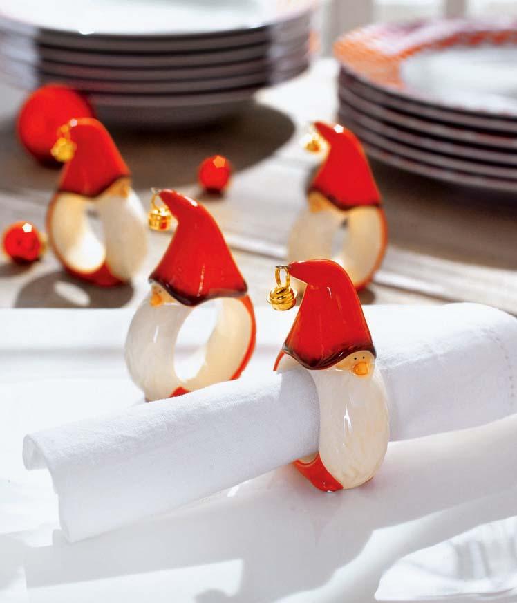 Завязанные в крупные и мелкие банты, они сделают сервировку изысканной. Укрась подсвечники, еловые композиции, столовые приборы (используя вместо «колец», просто связав вилки и ножи).