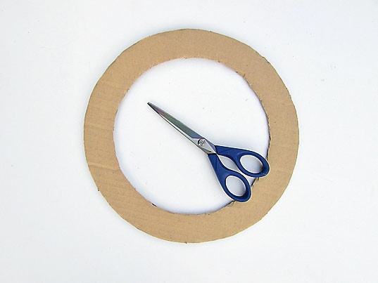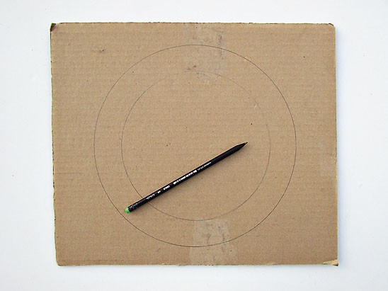 Нарисуй на картоне два круга диаметром 15 и 20 см так, чтобы получилось кольцо.