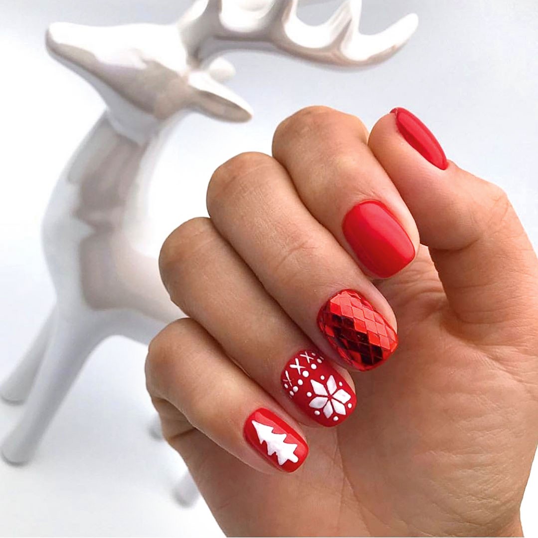 Такой маникюр будет гармонировать с теплым вязаным свитером со скандинавскими узорами.