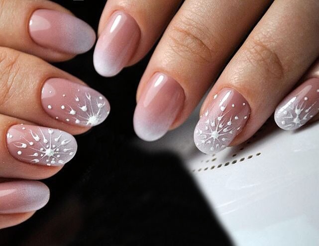 Омбре на ногтях, украшенное снежинками, привнесет элемент романтики в твой образ.