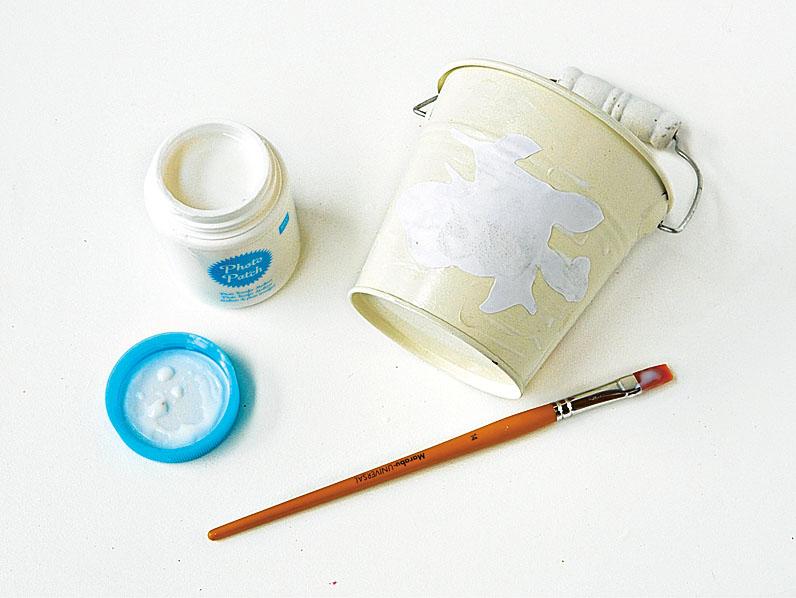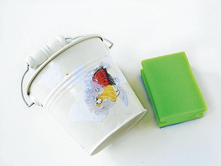 Хочешь украсить ведерко цветной каймой по кругу? Для ровных линий используй малярную ленту.