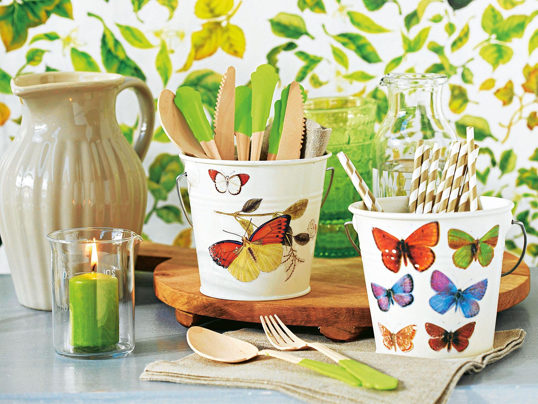Ведерки – хорошая идея для хранения приборов. Их можно поставить на стол или подвесить на стену... Но главное, для начала – украсить!