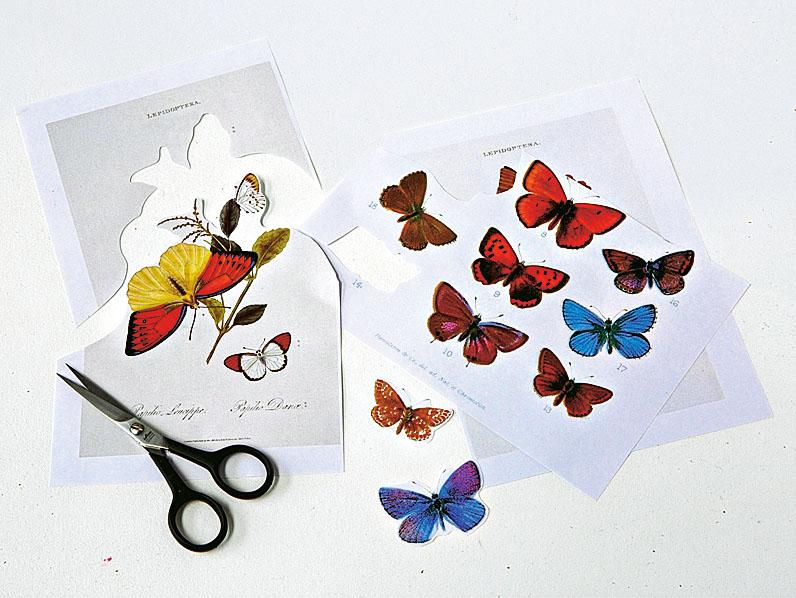 1. Купи в магазине салфетки с бабочками или скачай красивые изображения в Интернете. Затем распечатай их на очень тонкой бумаге и вырежи.