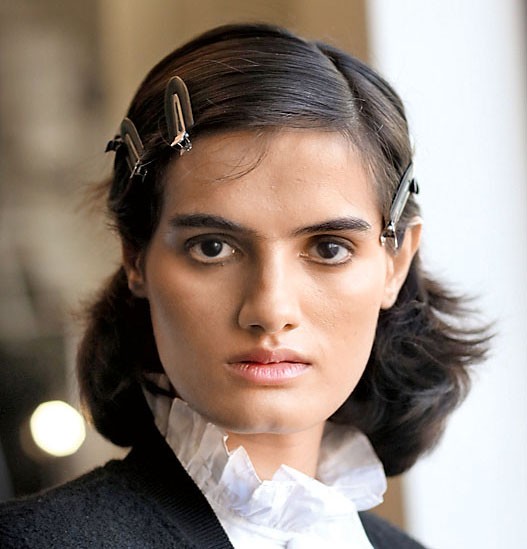 Заколи волосы у лица и по бокам, предварительно глубоко их зачесав.