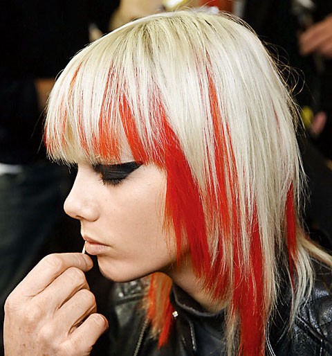 Окрась прядки в произвольном порядке любым суперярким «временным» спреем.