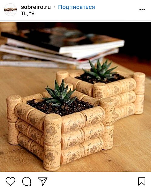 Отличный вариант для крошечных кактусов и других растений. Просто склей пробки (как на фото) и приклей дно – плотный картон. Кашпо готово – можно приступать к посадкам!