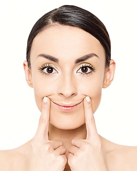 2. Улыбнись. Поднимай и опускай уголки губ пальцами, рот при этом должен быть закрыт, губы плотно сомкнуты.